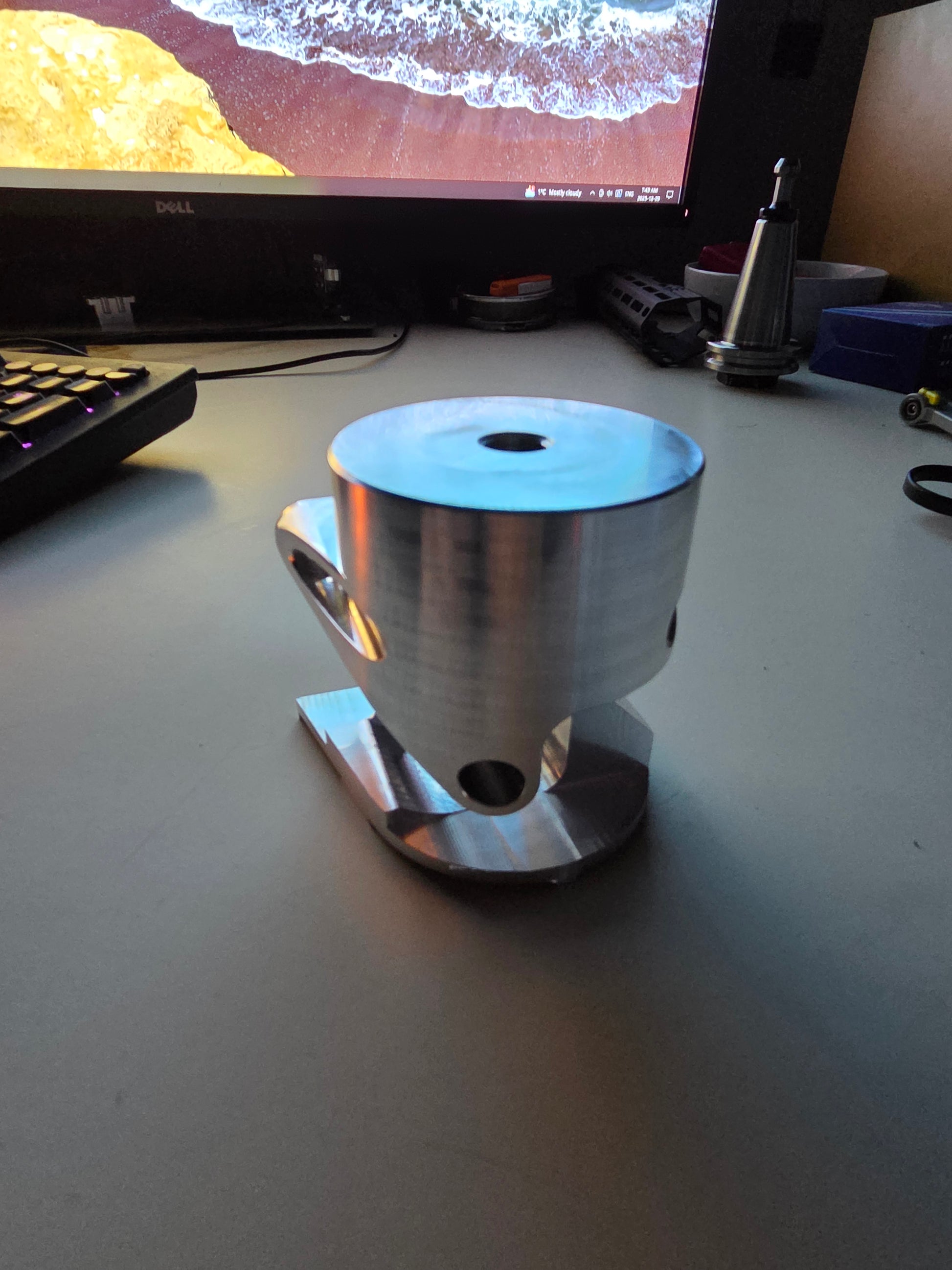 Machined in one operation, solid 6061-T6 hard anodized black.